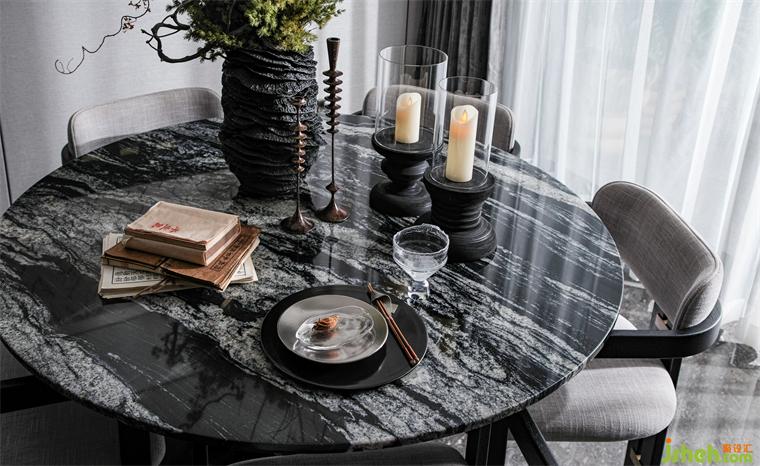 客廳,作爲整個空間的核心區(qū)域,以開放式格局實現(xiàn)人與人的多元交流。樣板房設計師把握傳統(tǒng)色彩文脈,以玄英黑色串聯(lián)起整個空間,多層級的肌理交織,營造純粹、儒雅的空間形態(tài)。