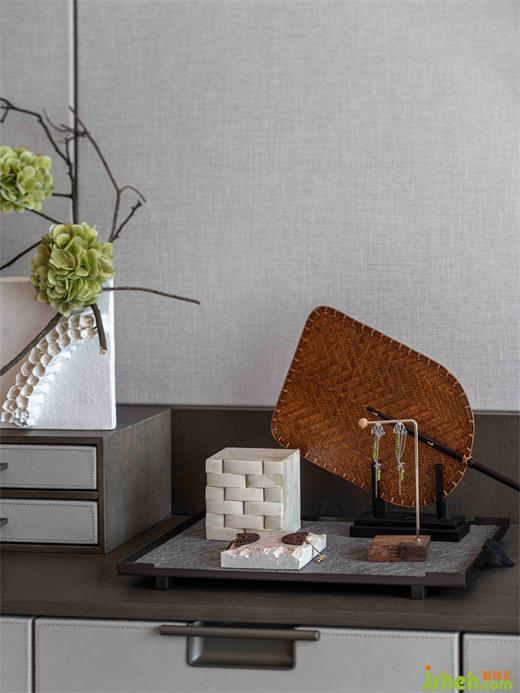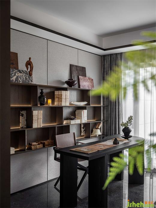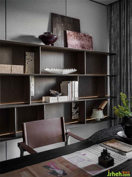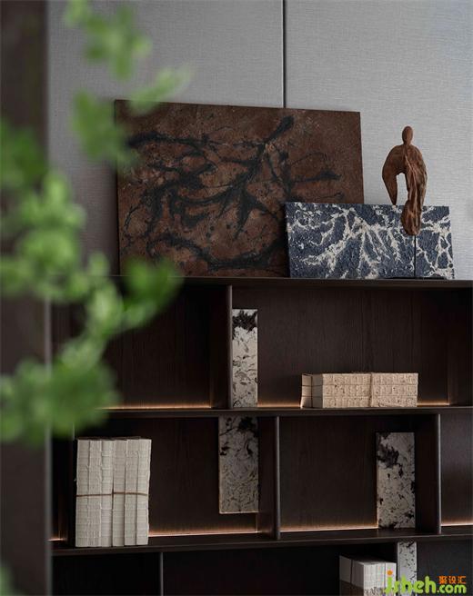 煮茶一盞,書卷一疊,沈靜的語言貫穿空間規(guī)整之中,詩情畫意與日常的生活交疊相合滲透出淡泊悠遠(yuǎn)之意。