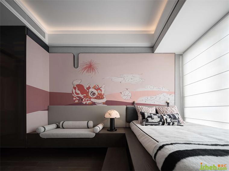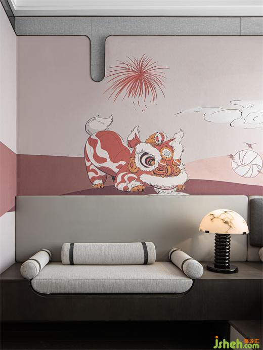 兒童房采用柔和浪漫的色彩爲(wèi)基底,樣板房設(shè)計以湛江醒獅文化爲(wèi)形,用現(xiàn)代手法進行轉(zhuǎn)譯,將藝術(shù)情感註入空間,童話式的意境俏皮有趣,更有求吉納福的美好意願。