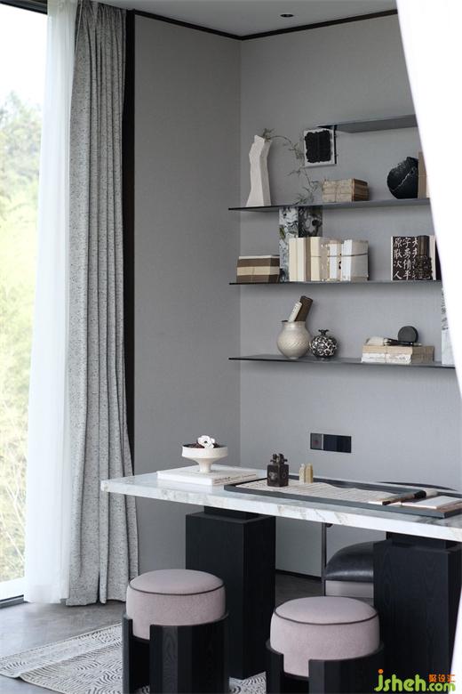 于東方的神色氣韻。樣板間設(shè)計(jì)以外景內(nèi)借的設(shè)計(jì)手法,將四季的自然意趣留于書畫室內(nèi),用細(xì)膩的