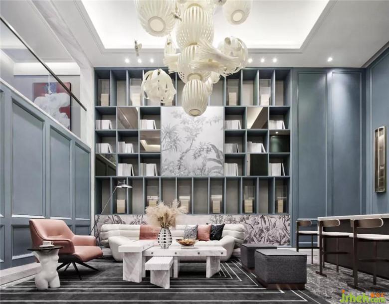 地下二層娛樂休閑室,延續(xù)著主題的致敬·經(jīng)典,深色系的書架上擺放著書籍與雕塑,設(shè)計(jì)師希望不同的空間要素具有其內(nèi)在特質(zhì),每個(gè)空間要素既有對(duì)比又和諧統(tǒng)一。對(duì)比要素之間能夠形成緊密的美學(xué)聯(lián)系,以獲得和諧的整體空間表現(xiàn)效果。使得人居空間文化獲得視覺與心理上的滿足。