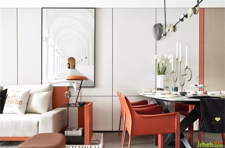 而居所保存生活的記憶,我們通過(guò)軟裝陳設(shè),以橙色裝點(diǎn)居所,輔以簡(jiǎn)約時(shí)尚的家具,藝術(shù)化的飾品小物,敘述生活的溫暖與浪漫。
