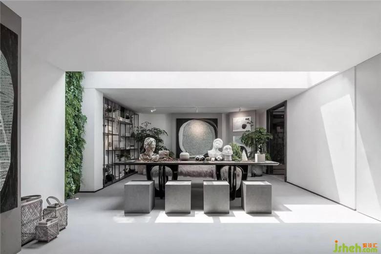 大面積灰白肌理墻面近一步感受留白的空間意義。