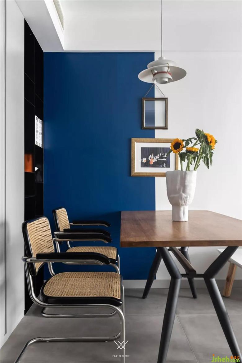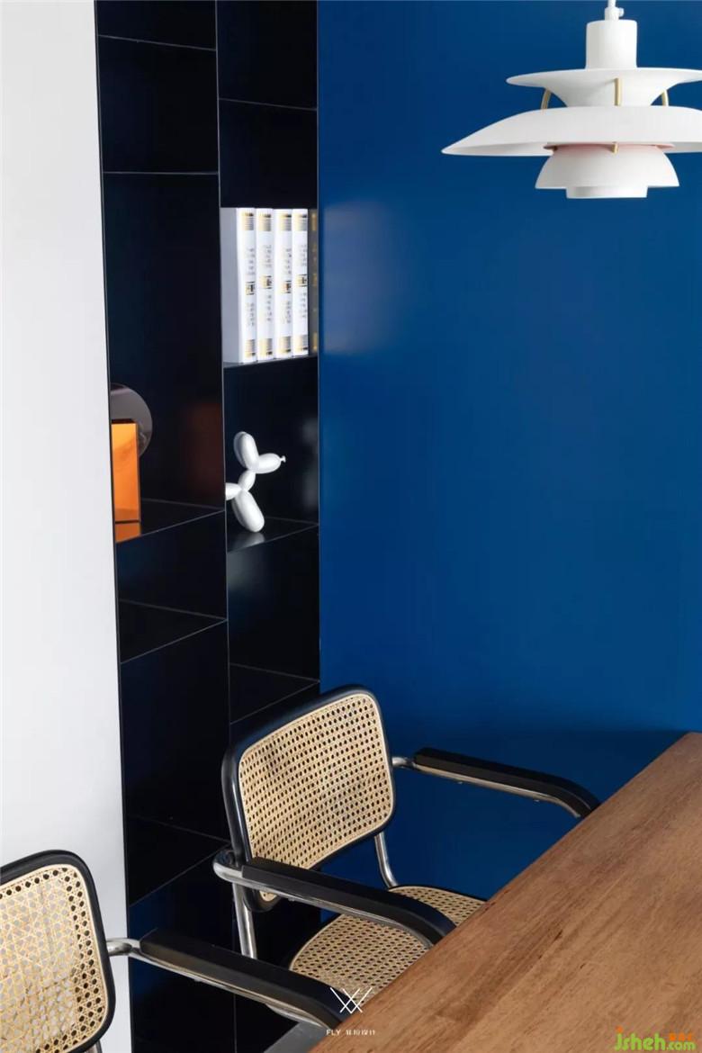 在這個空間中色彩的運用很豐富,沒有將色彩堆積在同一個空間中,而是通過色彩的色性,冷暖,來安排相應(yīng)的空間。比如,在公共空間中運用深藍色,藍綠色,整體以冷色調(diào)為主,冷色可以起到空間的擴張作用,放大空間。而休息空間,將暖色運用其中,讓人在休息空間中更為舒適。