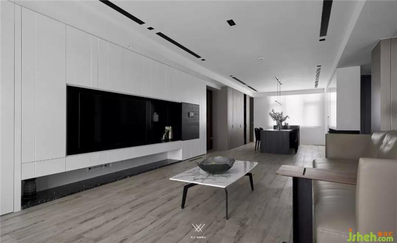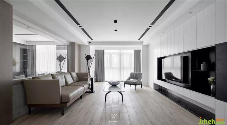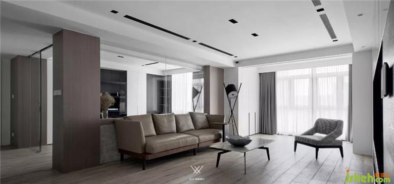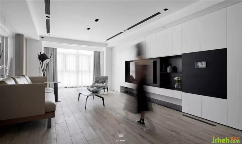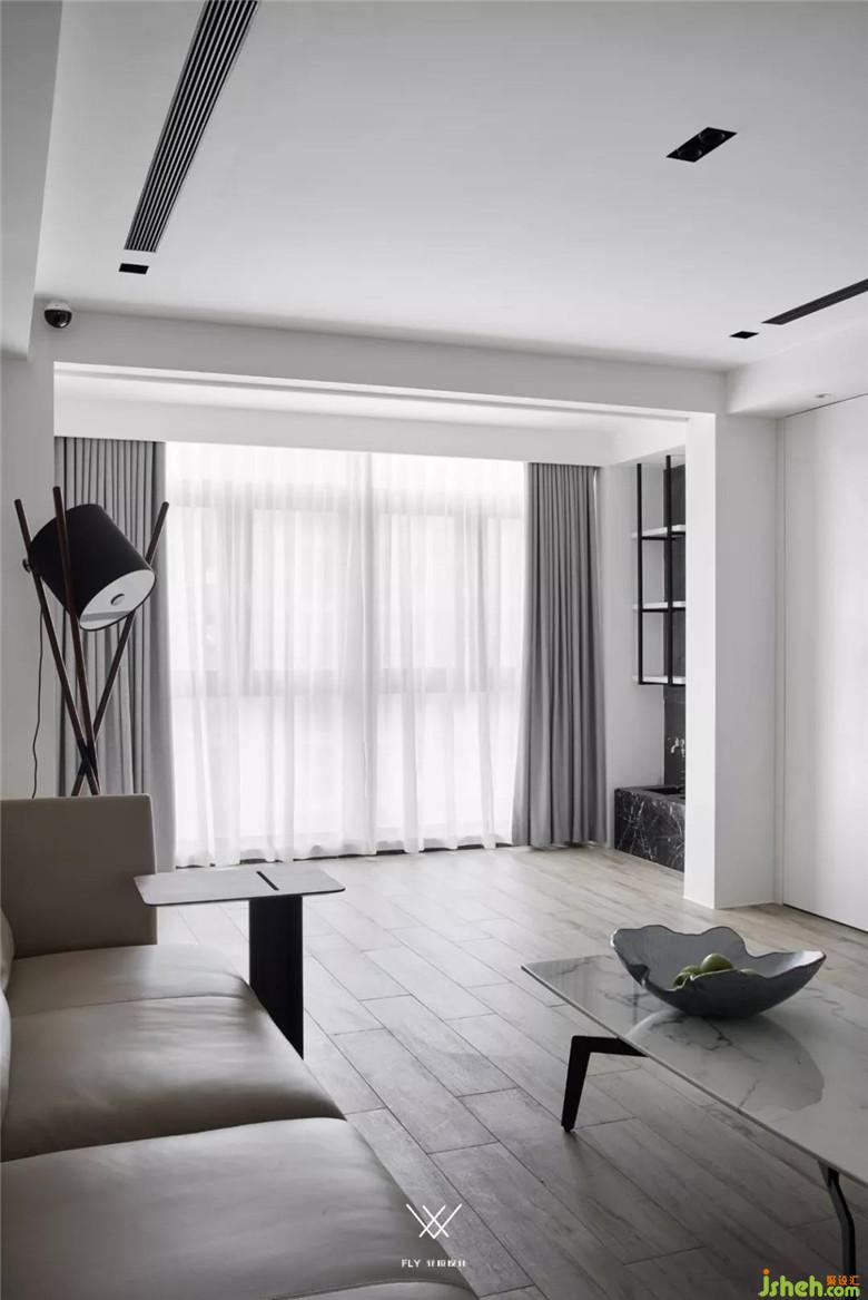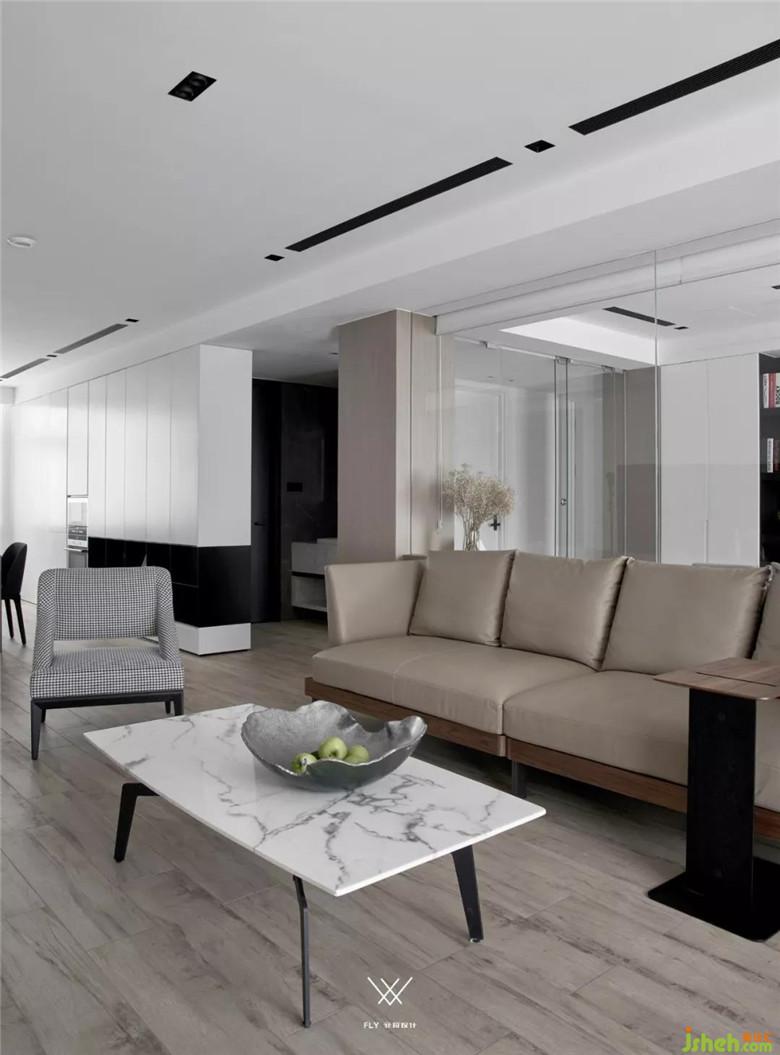 客廳整體采用的設(shè)計手法是減法,意在減去過多的裝飾,展現(xiàn)材質(zhì)最原始的面貌。