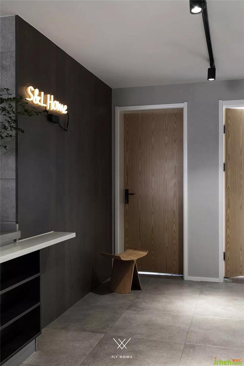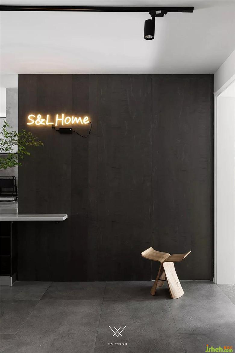 衛(wèi)生間隱形處理,以木飾面覆以整面墻,解決入門即廁的問題,統(tǒng)一的區(qū)域與孫先生、盧女士之家"S&L Home"的裝點(diǎn)雋雅溫馨。延續(xù)餐廚的筆觸,臺面穿插到玄關(guān)背景,增強(qiáng)區(qū)域?qū)哟胃小?