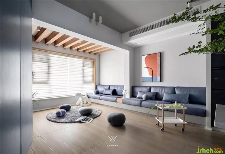 納入客廳后的陽臺梁過于突兀,在原陽臺做裝飾結(jié)構(gòu)梁,弱化處理達(dá)到空間配比的合理性,整個(gè)客廳更加和諧歸一。