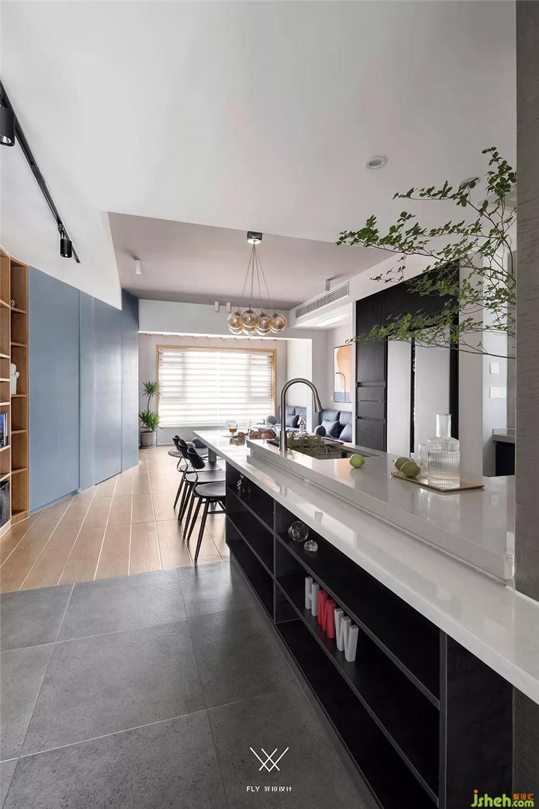 客餐廳地板選用木質(zhì)紋理的地磚,既有木質(zhì)的溫馨感又易于打理。頂部的灰從色彩上優(yōu)化空間層次,巧妙生成與廚房的區(qū)隔。裝修公司將陽臺納入客廳擴(kuò)展公共空間,滿足業(yè)主想要的多一些孩子的活動(dòng)空間和互動(dòng)空間的同時(shí),提升空間的體量感。