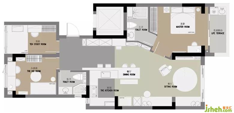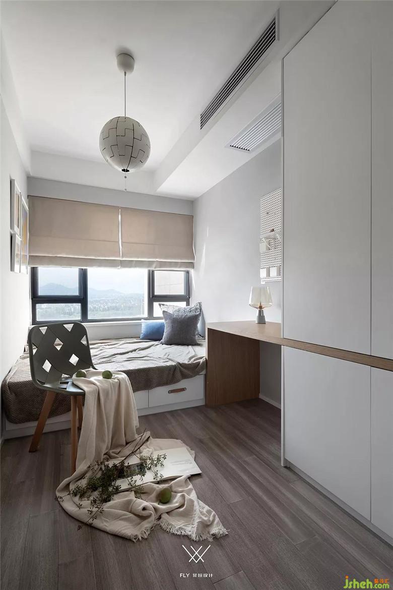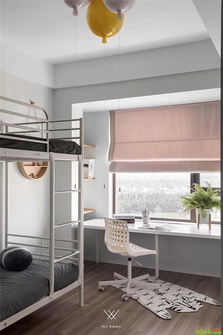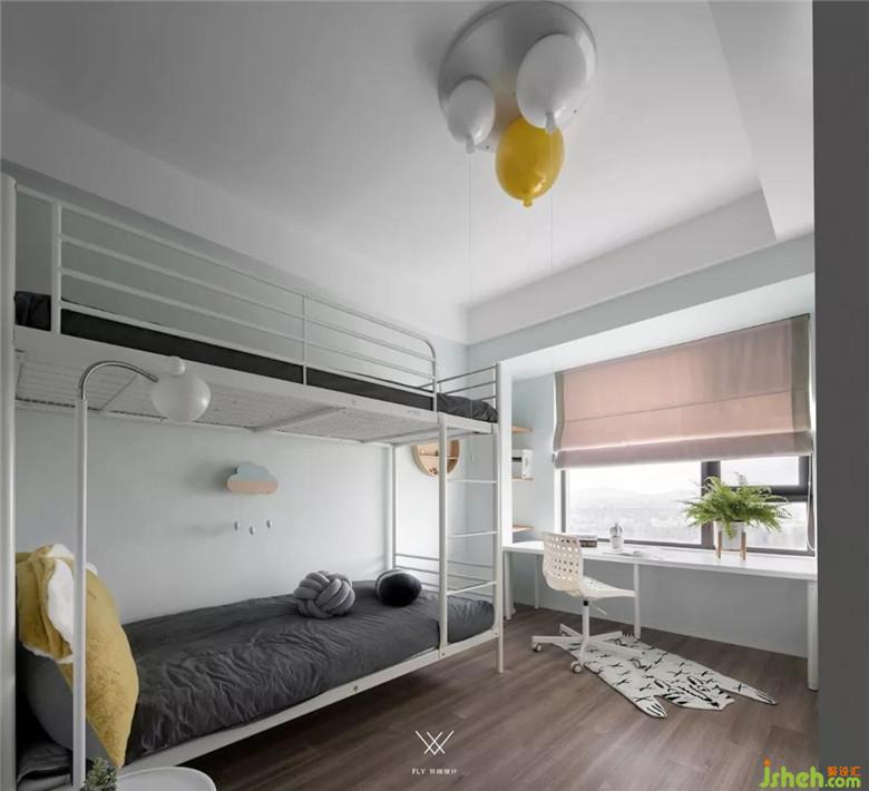 雙人床考慮到業(yè)主二胎的計劃,去掉飄窗以長書桌代之,以便小孩子日常學(xué)習(xí)。云朵燈、氣球燈、圓木掛件、開關(guān)旁的小小獨角獸,每一處的小心思都在守護孩子的那一份天真爛漫。