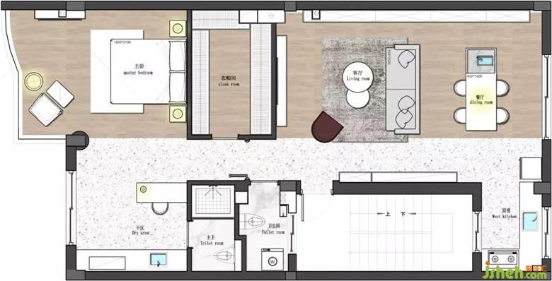 屋主在前期咨詢時就希望衛(wèi)生間的規(guī)劃上融入日式的四室分離,做干濕分離區(qū)。把洗手臺的功能多形式結合,融合洗手臺收納柜以及原水管包圓柱,大梁形式結構美感。