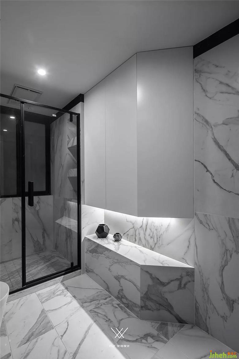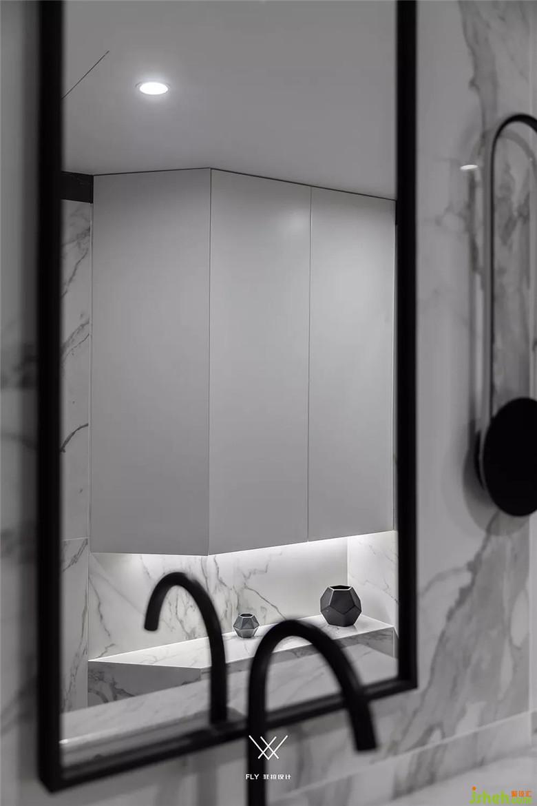 衛(wèi)生間有時(shí)候會隨處擺放東西而導(dǎo)致雜亂無章,為東西太多無處安放而煩惱。本案在衛(wèi)生間設(shè)計(jì)了一個(gè)容量足夠大的柜子,能夠?yàn)檫@些小東西找到很好的容身之所。從柜子結(jié)構(gòu)上來看,還有一個(gè)在進(jìn)入衛(wèi)生間的時(shí)候視線經(jīng)過柜子斜面,有一個(gè)緩沖的作用。