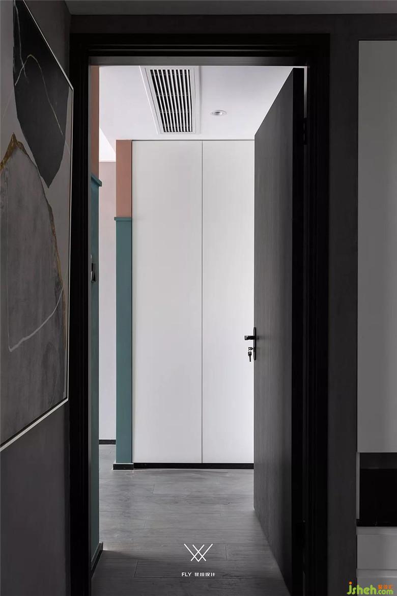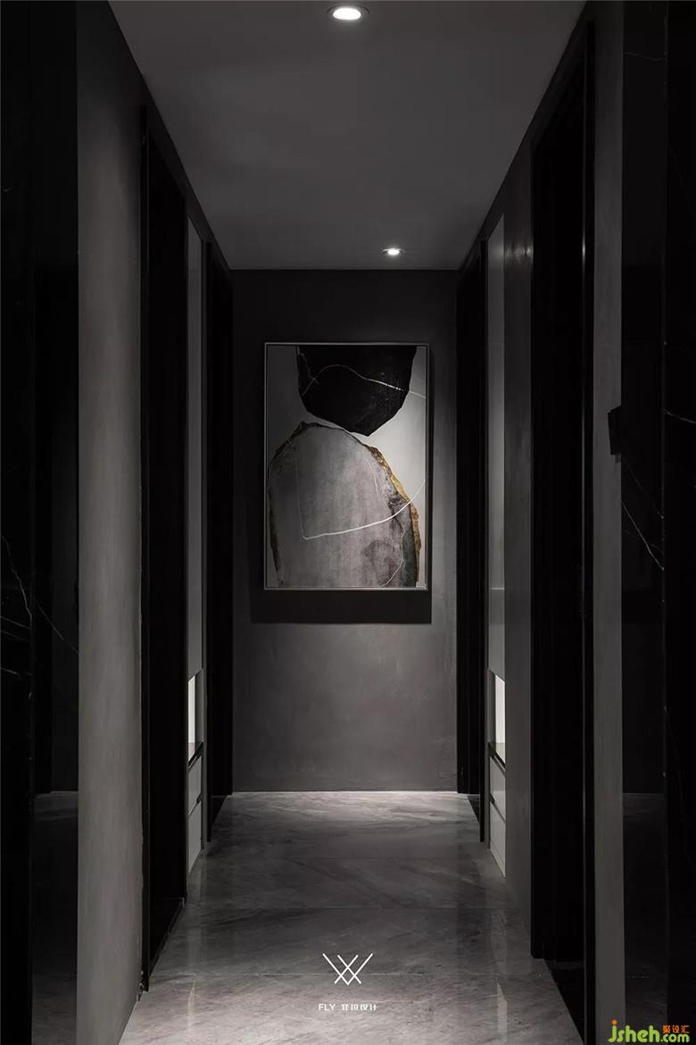 仔細(xì)對比一下走廊的兩盞筒燈能夠看到他們不在同一條線上。特意讓光線從畫的右邊向下打,讓這幅畫的感覺和整體效果更搭,也形成一個(gè)非常有氛圍的端景。