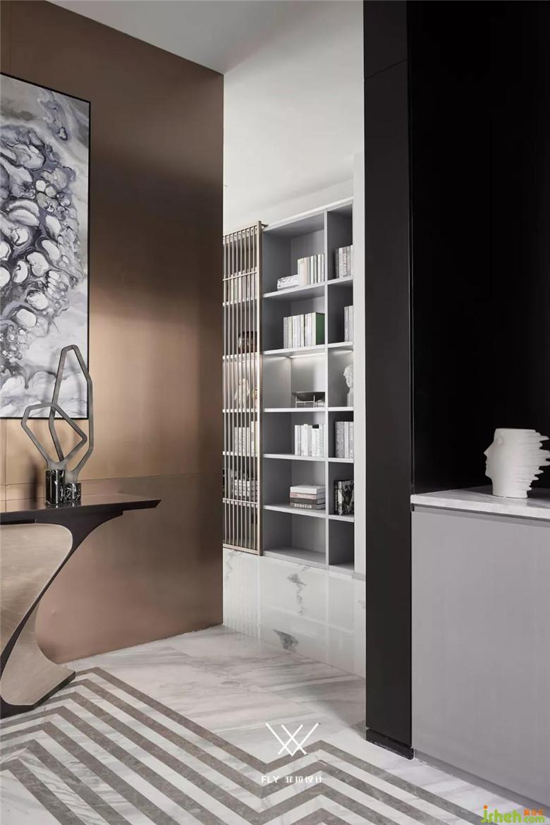 入戶后通過可旋轉(zhuǎn)的橄欖形立柱使玄關(guān)與客廳渾然一體,利用旋轉(zhuǎn)的立柱可以任意調(diào)節(jié)玄關(guān)與客廳的視角,這既強調(diào)了玄關(guān)的獨立性又能讓玄關(guān)與內(nèi)部產(chǎn)生更多的互動,而且增加了虛實相生的趣味性。