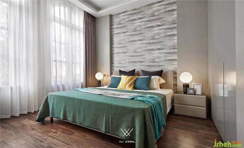 作為睡眠空間,主旋律應(yīng)該是寧靜和諧。原來需要穿過臥室才能到達(dá)二樓露臺(tái),干擾到了臥室的生活,主臥室的門直對(duì)樓梯口,一開門便是臥室的睡眠區(qū),破壞了臥室的私密性,主臥衣帽間過小,而且沒有通風(fēng)和采光。在與業(yè)主溝通之后,主臥室采用的是同色系的色彩對(duì)比,用寧靜平和的藏青和藍(lán)色作為點(diǎn)綴,床背景利用抽象水波紋壁紙和圓形掛件讓人聯(lián)想到印象派畫家莫奈的《日出·印象》一副平靜祥和的景象!