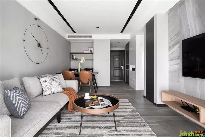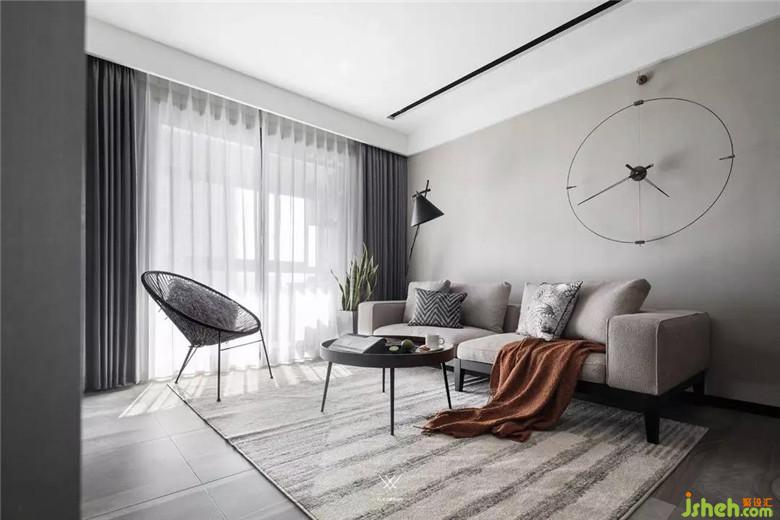 設計師應該考慮每一件東西的設計語言,這樣才能夠圍繞整體的設計主題來展開設計,每處都聚焦于一點。客廳的軟裝鐘掛件,是西班牙品牌nomon的現(xiàn)代簡約個性創(chuàng)意掛鐘。只用非常簡單的幾何線條勾勒而成,簡單而有條理。但在墻上的影子隨著時間變化而有不同造型,平淡中見神奇。