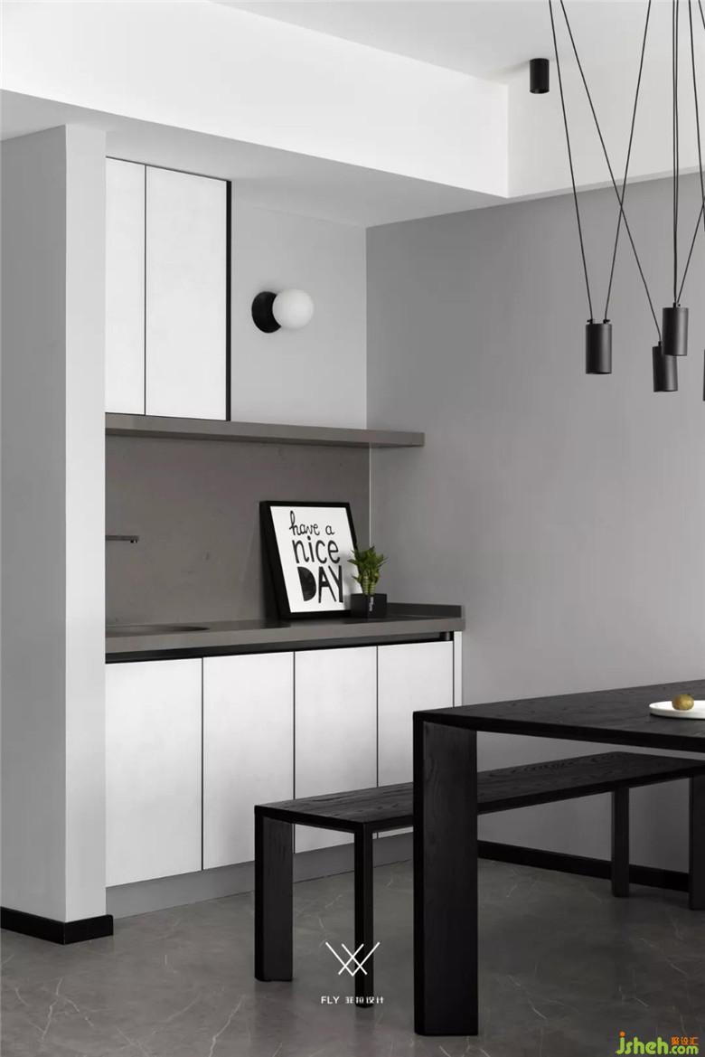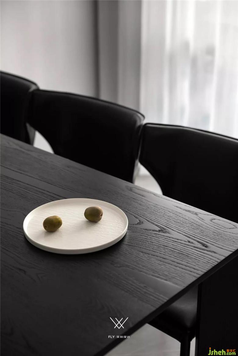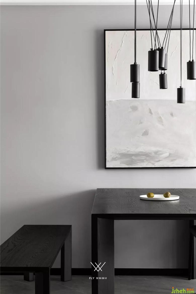 從風(fēng)格上定義的話,該案子是現(xiàn)代風(fēng)格?,F(xiàn)代風(fēng)格是去裝飾性的,更多的應(yīng)該體現(xiàn)在線條上的簡潔,家具的形體和材料的質(zhì)感上。所以餐廳上沒有過多裝飾性的表達(dá),顏色也較素雅,而且線狀燈的選擇為餐廳增強(qiáng)了線條感。