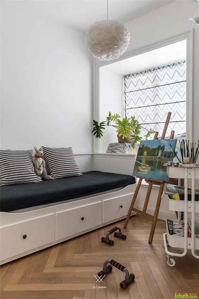 裝修公司在餐廳窗邊做了休閑吧臺(tái)兼書桌,桌板是用老原木自己Diy的,坐在這兒,耳邊響起輕快的音樂,看著喜歡的書,這將是多么美妙。從這里跨過餐廳,走入客廳,到達(dá)陽臺(tái),地面?zhèn)鱽淼氖墙z絲暖意,也許這就是幸福的感覺。