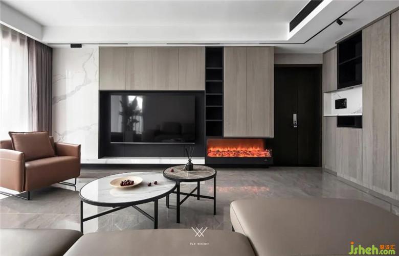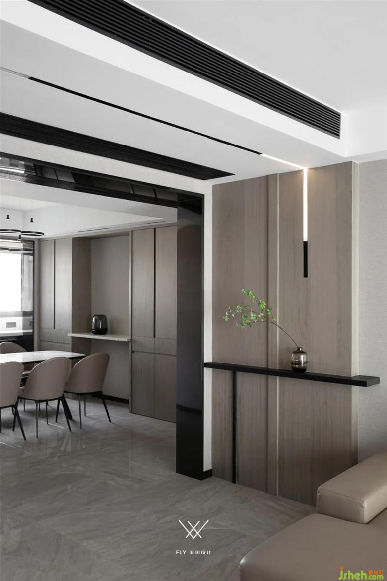 利用“巖板”“科技木”“線型燈”材質(zhì)