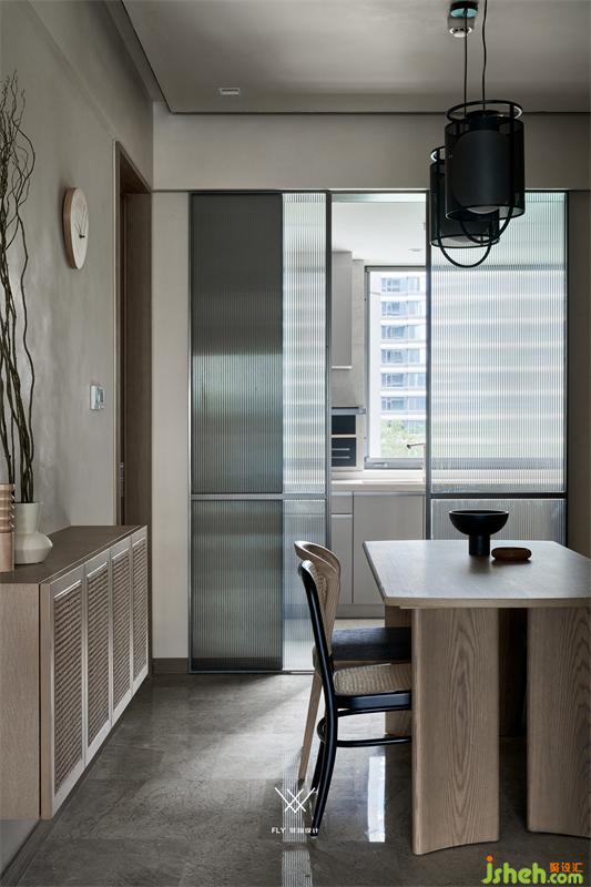 五口之家的百來方居所,考慮孩子學(xué)業(yè),棲息取舍之下自有可拓之處,于精裝基礎(chǔ)之上的局部調(diào)整,色調(diào)和諧、軟裝搖曳,不動聲色卻又處處為營的竊竊私語,憑借過去的過去,仰仗未來的未來,站在時間的邊緣,不斷回望,以過去為未來,即是現(xiàn)在。