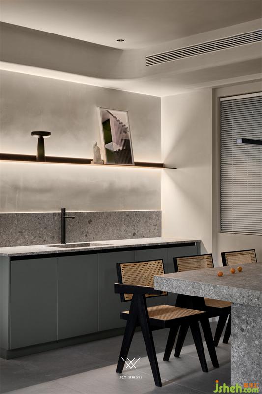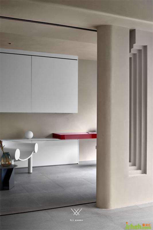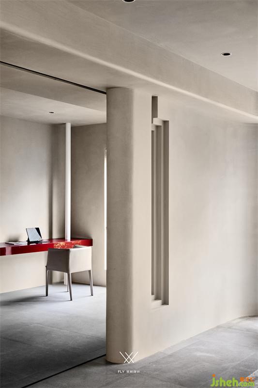 自白立體、結(jié)構(gòu)的交接,書房開放式呈現(xiàn)對(duì)話過(guò)渡,亦外亦里、亦靜亦動(dòng),細(xì)部的探究觸及,立面凹凸感、層次與漸進(jìn)、光的亮度與陰影神秘多變的姿態(tài)創(chuàng)造,材料肌理的表達(dá)變化見(jiàn)著于光之中。