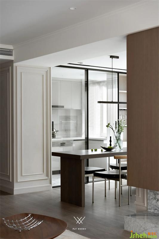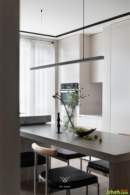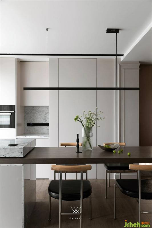 Change the adjacent kitchen space for the dining room, do meals flow line; Combined with the elements of western kitchen island, built-in kitchen appliances are placed, space functions are replaced and complementary, local embarrassment of the space is adjusted, the use density between regions is uniform, and the space attributes are diversified.