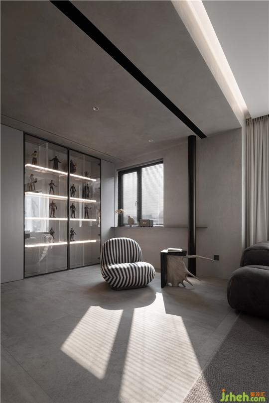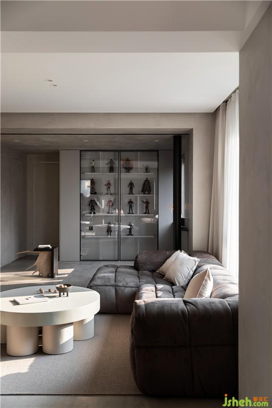 杭州家居設(shè)計(jì)師將原本狹小的臥室,打通納入客廳區(qū)域,作為休閑區(qū)以及業(yè)主手辦的展示區(qū),讓整體空間更加的開(kāi)闊通透。當(dāng)室外光線透過(guò)玻璃窗進(jìn)入室內(nèi),光與影在紋理之間的凹凸縫隙彼此交織,講述一個(gè)有溫度的居住空間。簡(jiǎn)約的家具之間保持著彬彬有禮的距離,極致舒適的畫(huà)面貫穿每一個(gè)空間,讓每一件物品彰顯藝術(shù)陳列的視覺(jué)。