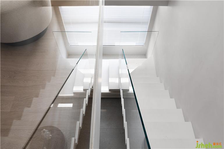 樓梯布局同時(shí)影響著兩層空間的規(guī)劃,改變位置后的樓梯為二樓的布置留有充足的發(fā)揮空間。不同于一樓客餐廳就餐或者與親朋好友的社交場所,二樓起居室偏向于更具私密性、是家人之間的互動(dòng)場所。