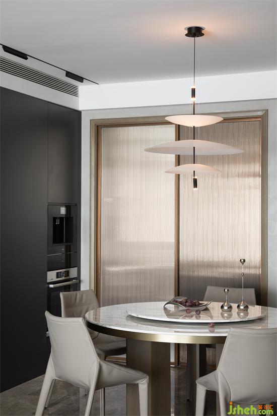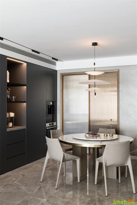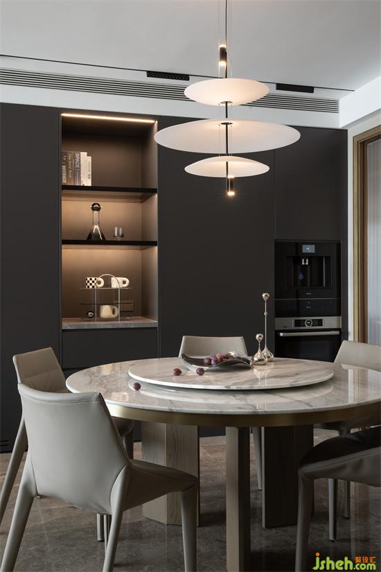嵌入式家電以餐邊柜形式立于一側(cè)