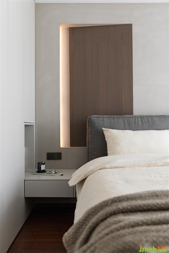 淡雅舒適的空間色調(diào),材質(zhì)亦與客餐廳相呼應內(nèi)嵌式床頭背景造型,酣然于立面空間與多重角度的互動