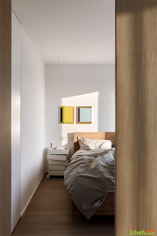 感知生活中的詩意與溫柔,雙開門形式打造家居生活的儀式感;臥室頂面結構的融合過渡,杭州臻藍府家裝設計以造型的自然婉轉重塑功能構件的展現(xiàn)形式。