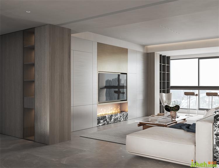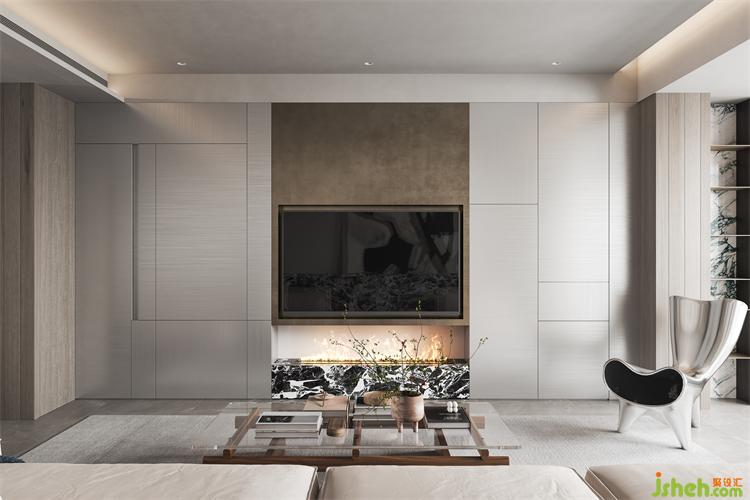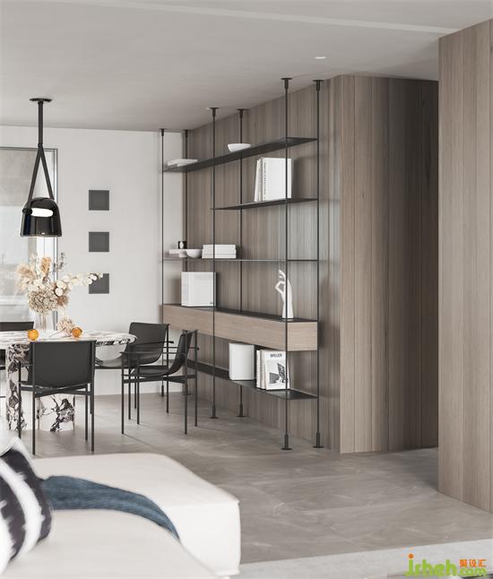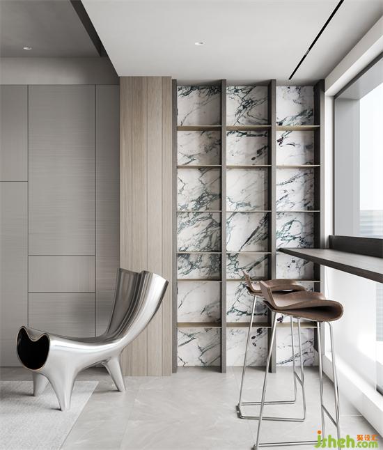 形式追隨于功能而變化,留意于室內(nèi)外的互動(dòng),陽(yáng)臺(tái)納入客廳后做休閑吧臺(tái),直面住宅區(qū)的中央景觀。