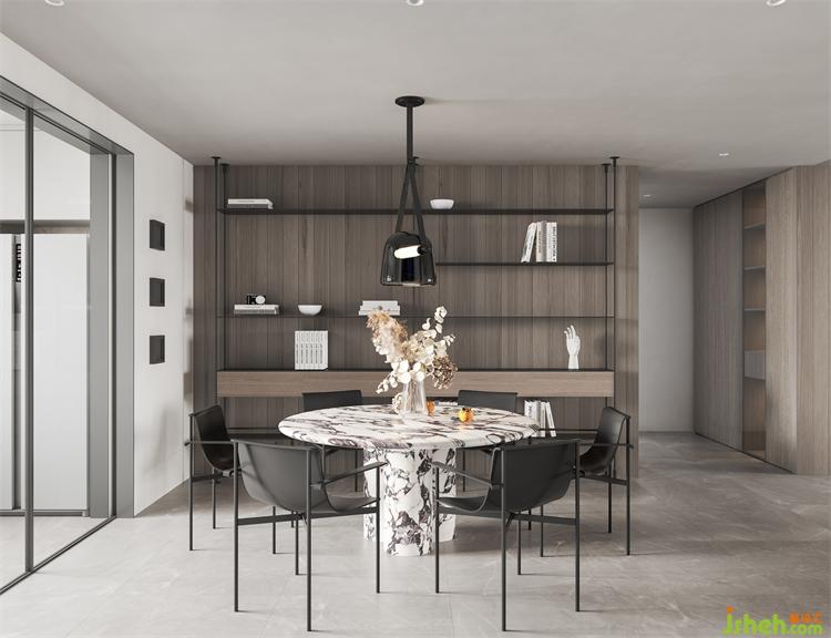 苛求空間多種角度的視覺(jué)情感,統(tǒng)一客餐廳頂面做平頂塑造空間的節(jié)制與清冷,米白色的主調(diào)與水洗色的灰相融洽,材質(zhì)的碰撞使得剛硬與溫潤(rùn)并存,杭州曉風(fēng)印月裝修設(shè)計(jì)搭配出協(xié)調(diào)的高級(jí)感與家居細(xì)膩。