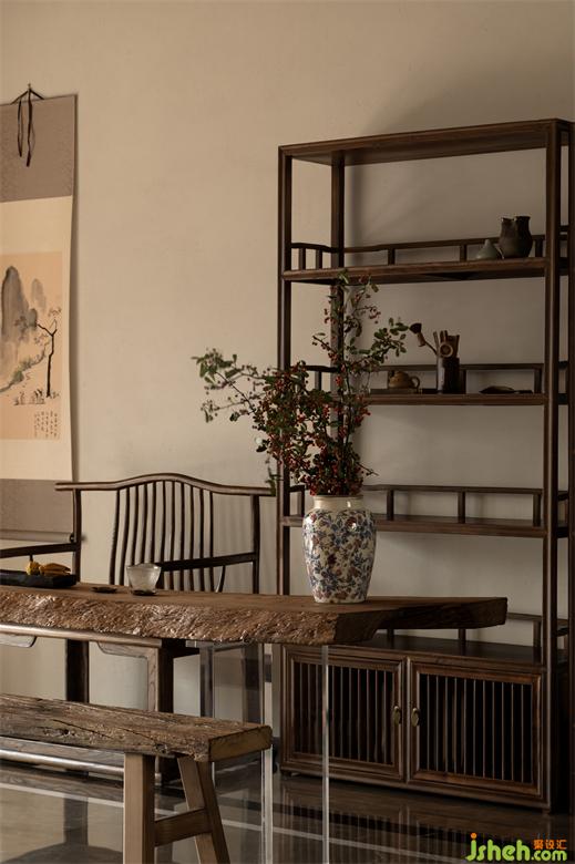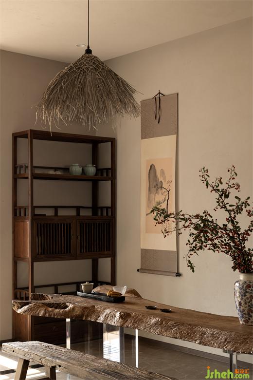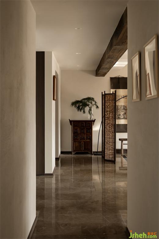 現(xiàn)代美學(xué)與古典元素的結(jié)合,自然造物與新型材料的碰撞,杭州朗譽(yù)府精裝房改造在空間里可見智人與自然演化的人文周邊??创澜绲慕嵌扰c自我的思考,與時(shí)間回溯形成自然連接,稻草漆輔以粗狂的原始感,墻頂一體的米黃色調(diào),大地色系的家具選品,以柜體為空間重色控制整體氛圍,然后感受人與空間的精神鏈接。