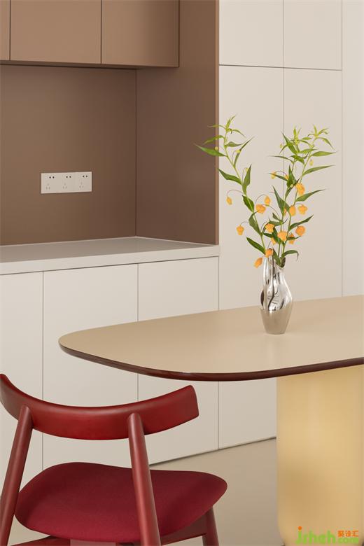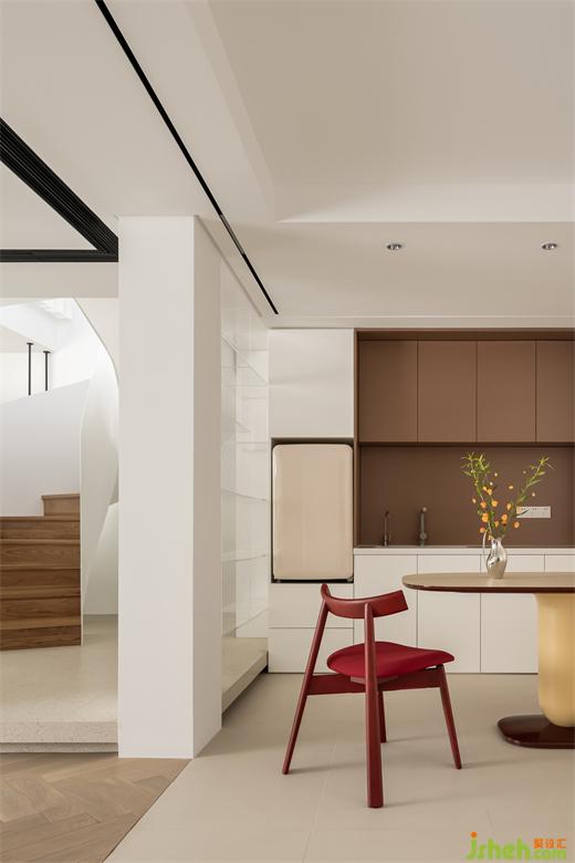 家居空間的展現(xiàn)形象來源于居者生活方式且隨之而變,杭州西湖國(guó)際城躍層裝修設(shè)計(jì)以人為本依需而行,完善當(dāng)下空間的家居使命。餐廚區(qū)根據(jù)需求調(diào)配放置二樓,與建筑結(jié)構(gòu)結(jié)合呈現(xiàn)有其特色的功能區(qū),感受不同形態(tài)下的空間魅力。