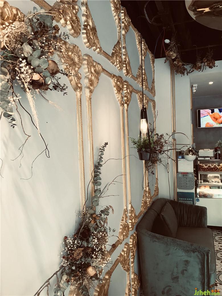 墻身金色的石膏造型,一進(jìn)門就覺(jué)得店內(nèi)很金碧輝煌,感覺(jué)就像進(jìn)了宮廷那樣。地面的花紋磚與墻身的石膏造型的反差對(duì)比,加上植物花的裝飾擺放,恰恰可以充分營(yíng)造出整體空間的氛圍。