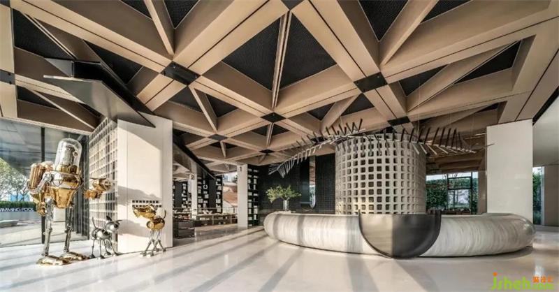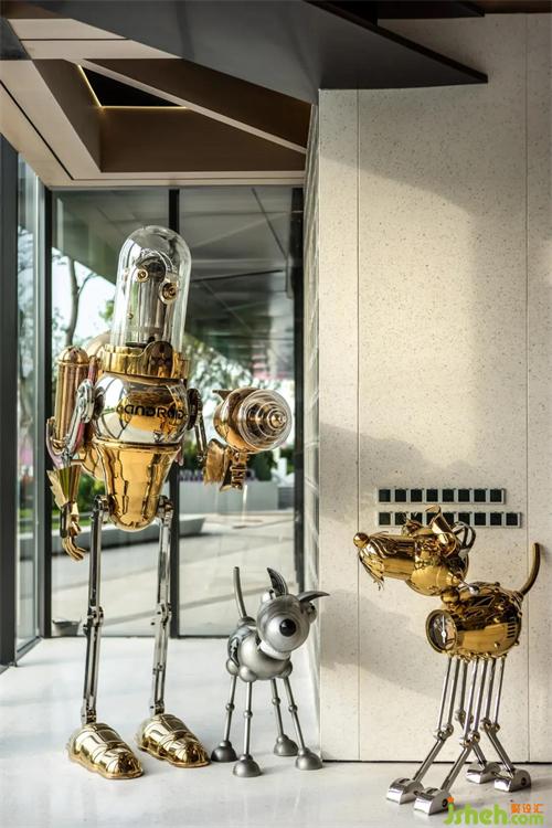 "藝術屬于古老的世界,科學屬于現(xiàn)代的世界。"設計師將藝術文化與潮流科技相融合,入口前廳以比利時藝術家stephane Halleux的蒸汽朋克藝術玩偶為序,融古匯今,拉開一場科技與藝術交流碰撞的感觀盛宴。