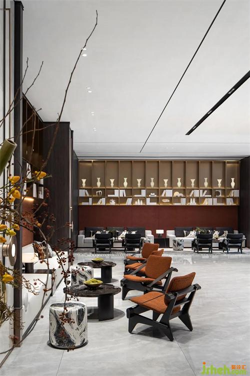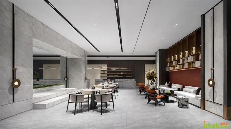 飛檐設(shè)計(jì)在晉江力高君樽府銷售中心重現(xiàn)了竹影萌動(dòng)、光影穿梭的一幕,利落又不失溫度的設(shè)計(jì)手法,營造東方靜謐雅致的意境,既營造置身所處的現(xiàn)世,又設(shè)計(jì)另一個(gè)精神上的后花園。