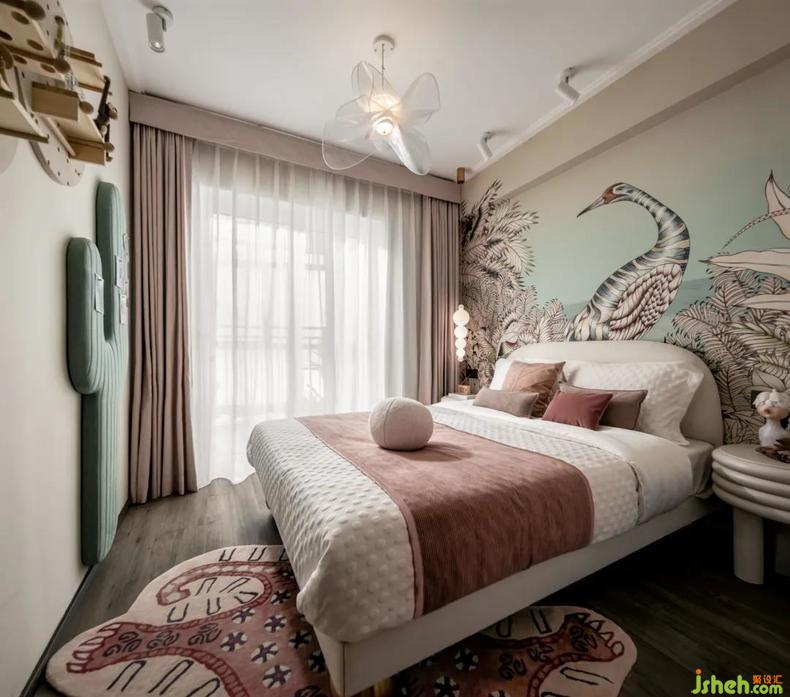 兒童房將無(wú)處不在的弧形引入房間,消除結(jié)構(gòu)上的銳感,樣板房設(shè)計(jì)再借不同低飽和度的顏色融入鮮活色調(diào),滲透在每個(gè)角落的點(diǎn)滴童趣,讓孩子房充滿柔和溫度。