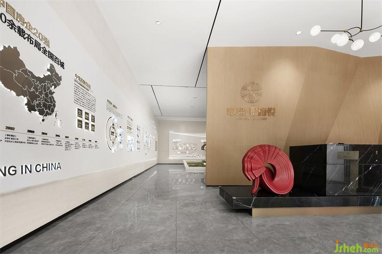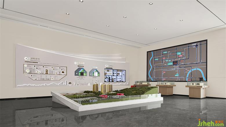 沙盤區(qū)及企業(yè)文風(fēng)采區(qū),空間形態(tài)上,以現(xiàn)代建筑形態(tài)為切入點,結(jié)合點、線、面構(gòu)成空間體塊,營造連續(xù)流暢的空間體驗感,挖掘人的空間感受,尋找與自然觸動人心的互動交流。