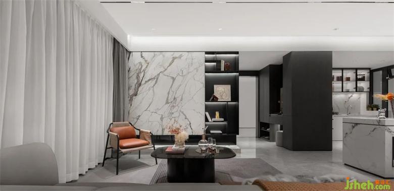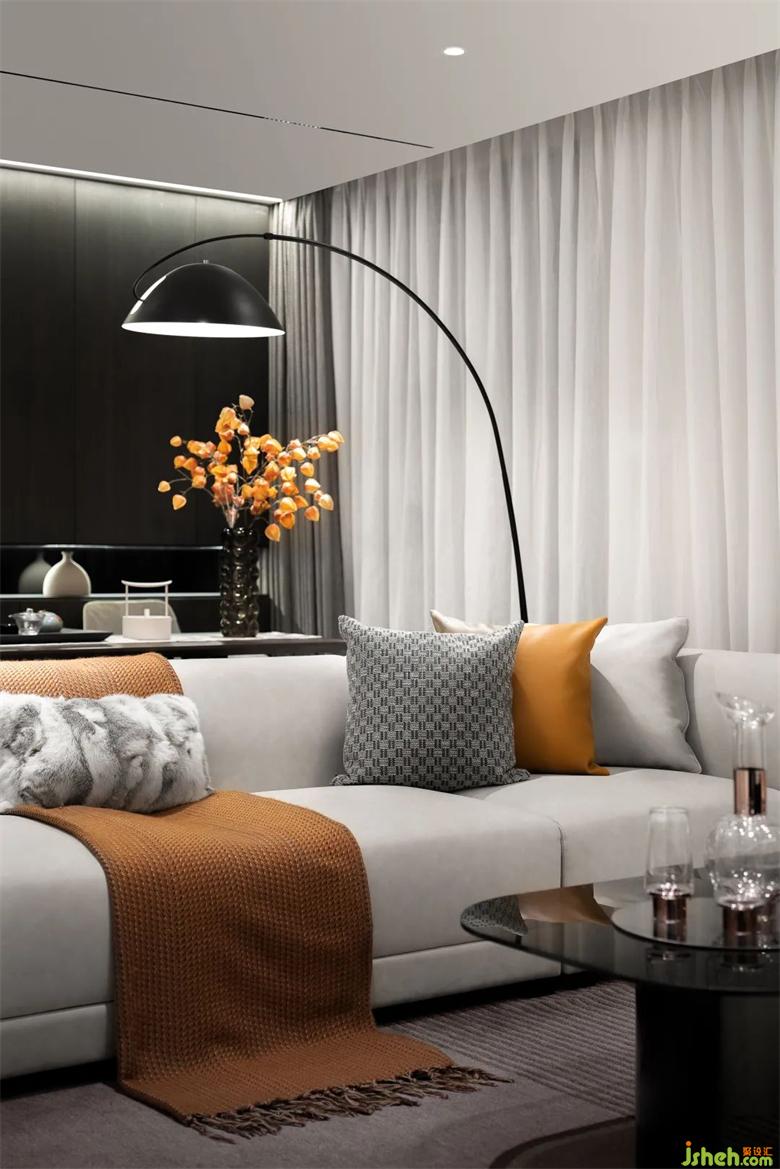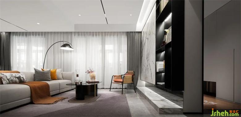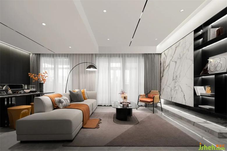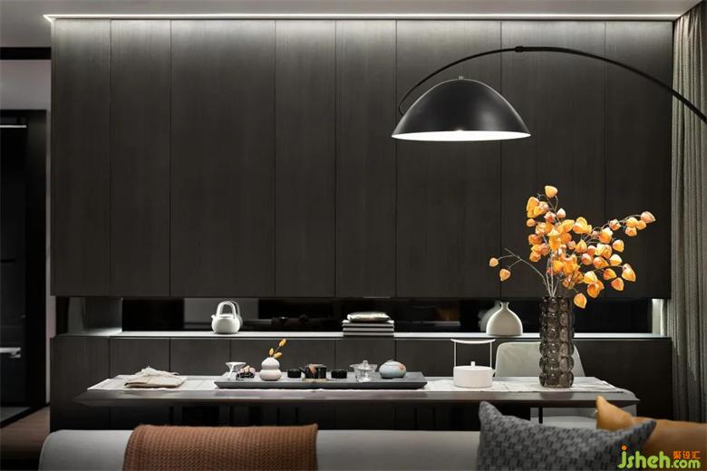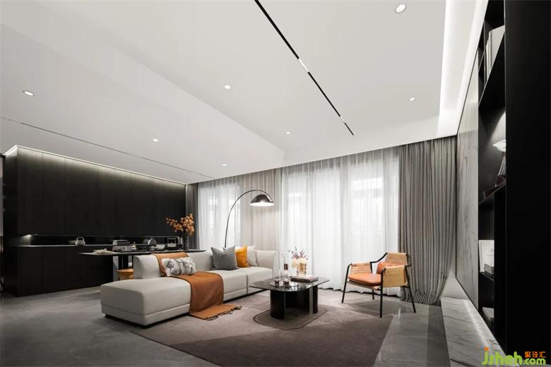 注重和諧的視覺感官,樣板房設(shè)計以深色調(diào)與灰色為主調(diào),配合愛馬仕橙作為點綴,打造沉穩(wěn)大氣卻不失暖意的“家”。是無盡藝術(shù)與意向,納藏生活的哲學意趣。簡潔干練的線條,平衡光影秩序的同時,又營造純粹、寧靜、詩意的居住環(huán)境。