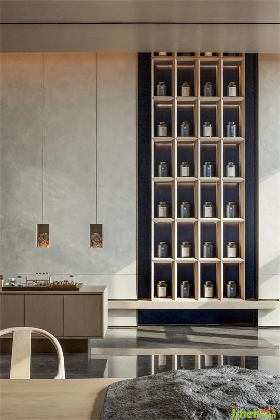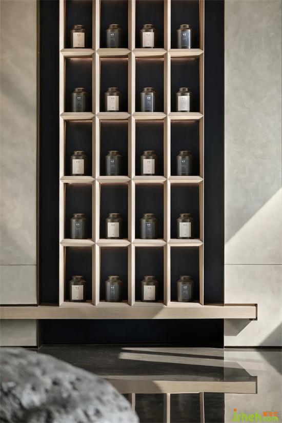 茶品的展示,延續(xù)白族特色木雕裝置對稱陳列,會所設計給予客人尊貴儀式感,精致的雕花細節(jié)與綽綽光影互為映襯。