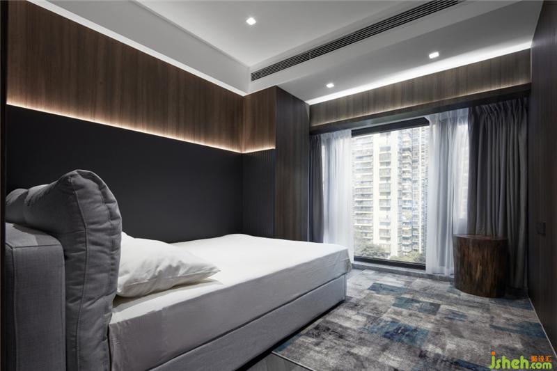 功能使用感受:做有用的設(shè)計(jì)。如書房原始建構(gòu)是一個(gè)小窗,這樣進(jìn)入書房感覺(jué)窗體不對(duì)稱,而且有一種老虎窗的既視感,為了空間的整齊劃一。設(shè)計(jì)師運(yùn)用黑鋼做了一個(gè)大窗框,將窗的右側(cè)用鏡面作為分割,使鏡面與窗融為一體,形成一個(gè)大窗感受,也讓空間左右上下四側(cè)都對(duì)稱??臻g功能感受考慮裝飾性收納和便捷式收納的有機(jī)結(jié)合。如書房的書柜、多功能房的收納柜。