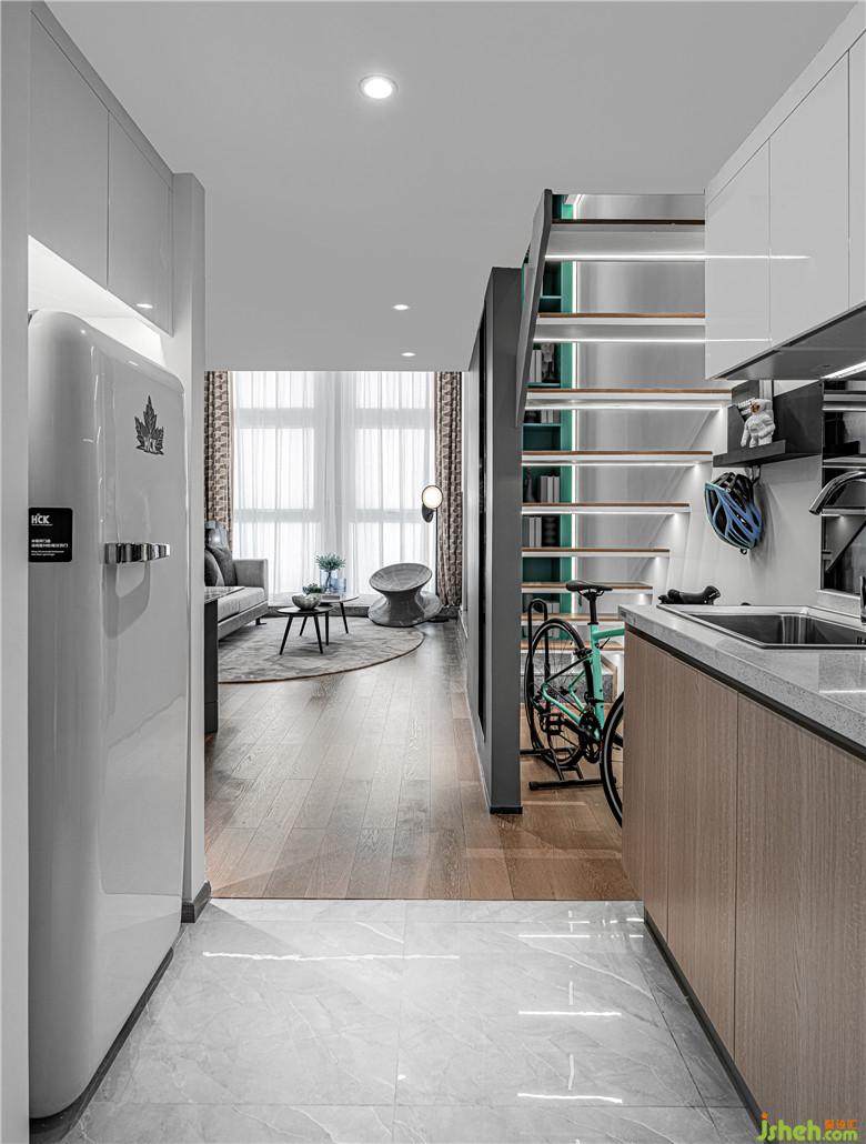 緊湊可愛(ài)的Mini廚房,落地冰箱顯得貼心。誰(shuí)來(lái)自五湖四海,又囿于家和廚房?唯有美食和愛(ài)不可辜負(fù),一格燃燒的灶火,冰箱里充足的食物總能讓人感到滿足和眷戀。
