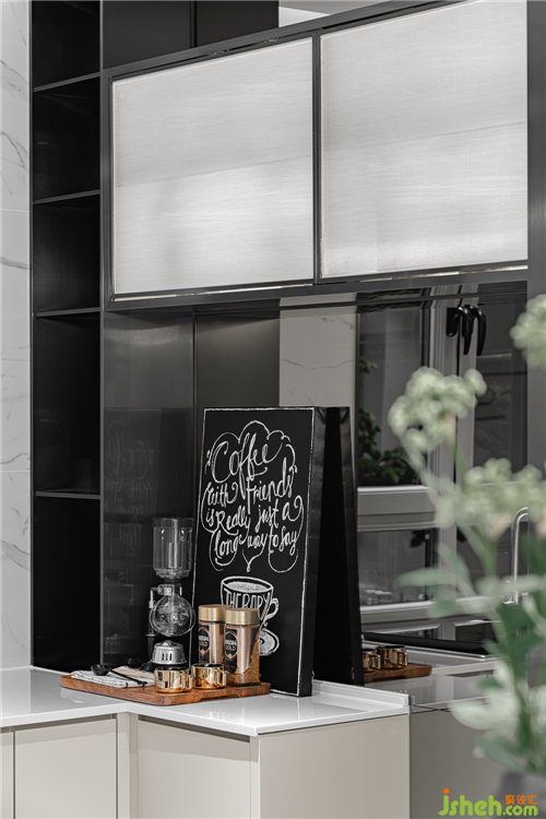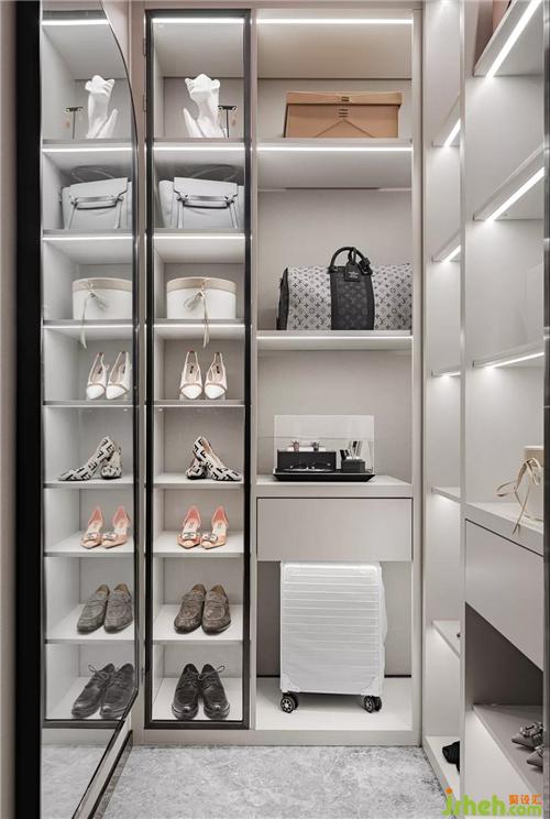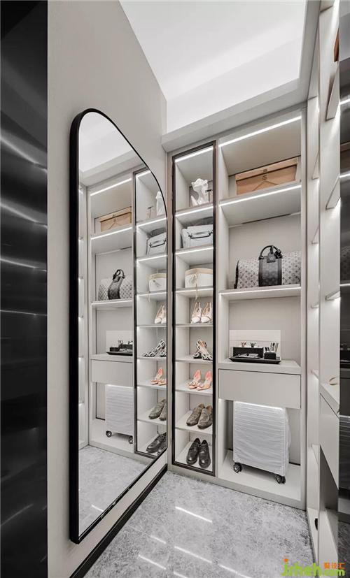 空間色調(diào)在儲(chǔ)物間得到延續(xù),陳列組合的設(shè)計(jì)手法,將“品味”與“生活”于鏡中一同展示出來(lái)。