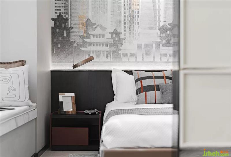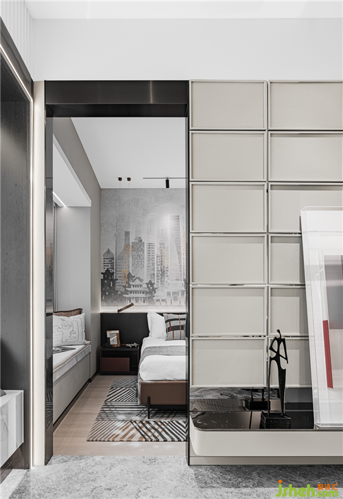 空間簡(jiǎn)凝,不多假飾,低飽和度的色彩、簡(jiǎn)單的紋理、搭配抽象意境的城市剪影 ,北京樣板房設(shè)計(jì)一切陳設(shè)落得妥當(dāng),只為無(wú)限拉近人與生活、與自然的距離。