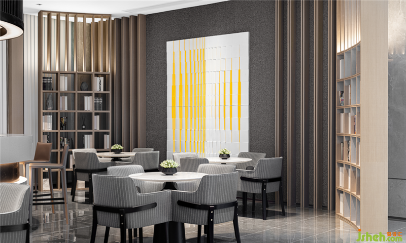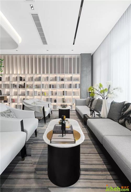 設(shè)計(jì)師在直線條的基礎(chǔ)上,引入新的體塊造型元素和軟裝陳設(shè),為洽談區(qū)塑造更多的功能面貌,突破了傳統(tǒng)洽談區(qū)的單調(diào),使人眼前一亮。