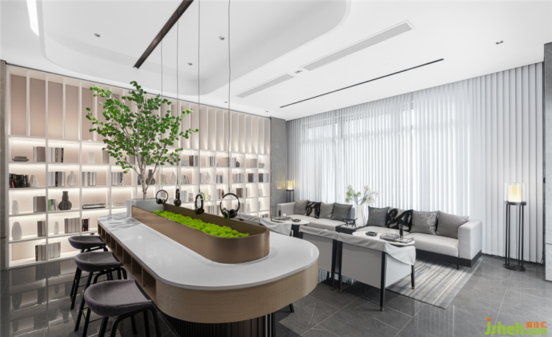 經(jīng)過(guò)連廊,隨和風(fēng)細(xì)雨走入到無(wú)錫時(shí)光鴻著營(yíng)銷中心。無(wú)錫售樓處設(shè)計(jì)它為我們敞開(kāi)了一個(gè)平行時(shí)空,讓我們真正體會(huì)到空間停頓下來(lái)的召喚。