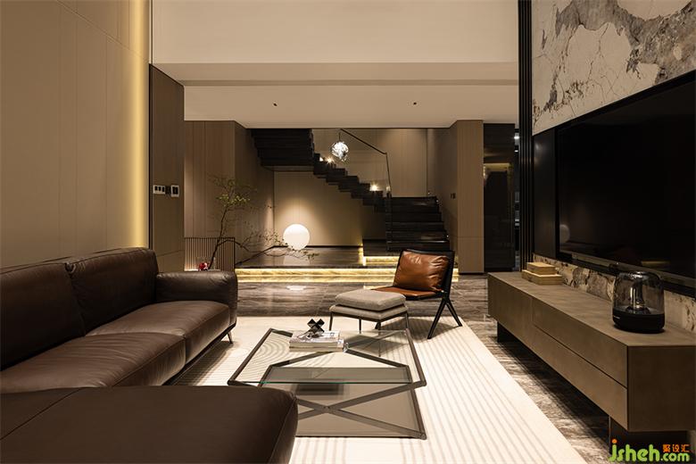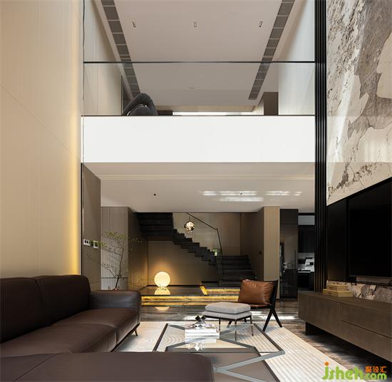 挑空的縱深感,增進了上下樓層的互通對話,挑空區(qū)的立面置入半墻玻璃隔斷,現(xiàn)代別墅裝修設(shè)計既保留了通透視野,也能予以居住者更多安全感。