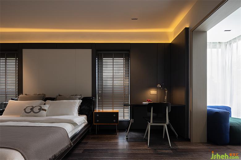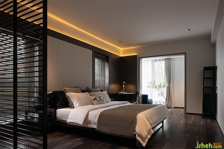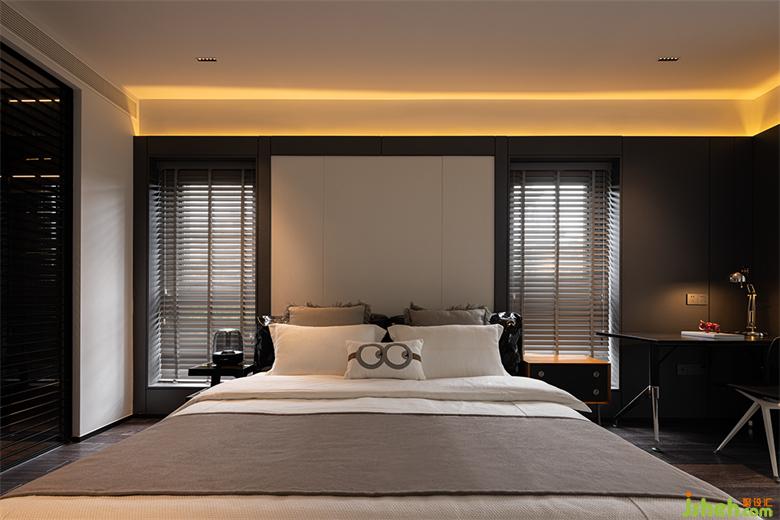 現(xiàn)代別墅裝修設(shè)計(jì)以沉穩(wěn)內(nèi)斂的設(shè)計(jì)筆觸凸顯臥室屬性,并通過色彩、材質(zhì)之間有比例的組合變化,釋放出睡眠空間的視覺感及功能需求。