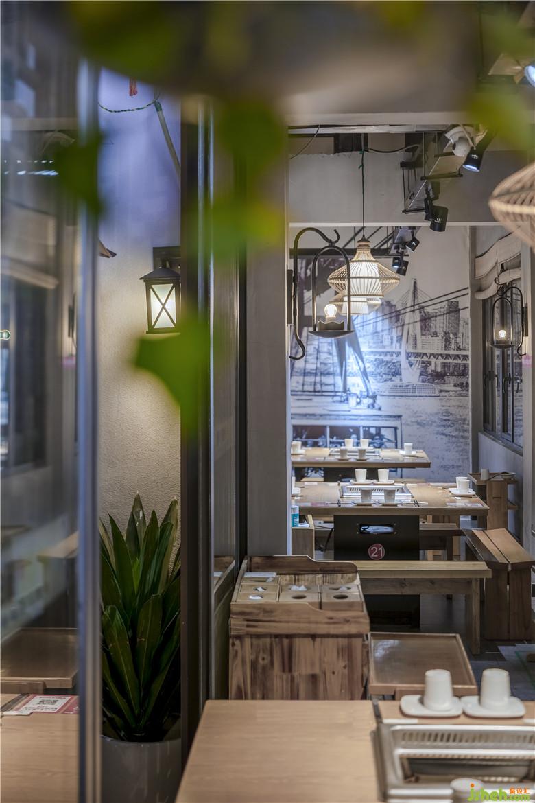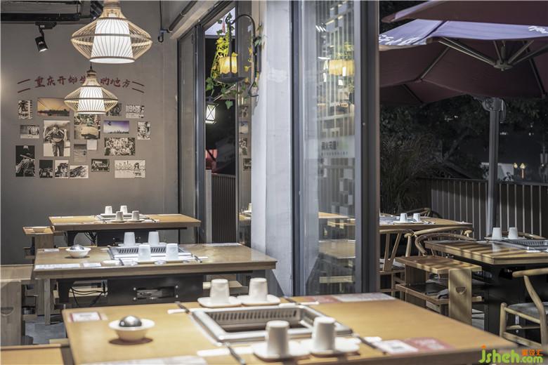 從紅色的東水門大橋獨特的色彩構(gòu)成,獲得靈感,既然周圍的建筑設(shè)計融合了鮮亮的建筑元素符號,為什么不可以結(jié)合重慶本地青磚綠瓦運用于空間設(shè)計呢?同時,始建于清乾隆二十四年(1759年)的湖廣會館,亦是見證過重慶成為繁華商埠的歷史,而且在建筑和設(shè)計上,也是體現(xiàn)出對藝術(shù)自身審美的高度要求。所以在三樓包廂,紅色醒目的宣傳語:“只做地道老重慶味道”,大膽采用了紅色,掛在墻壁的白色勺子,滿滿的豌豆、綠豆和辣椒等等,與之互相呼應(yīng)。餐廳設(shè)計